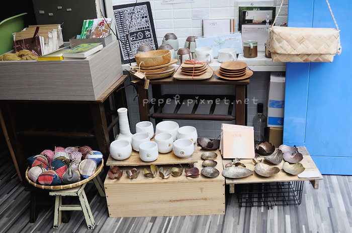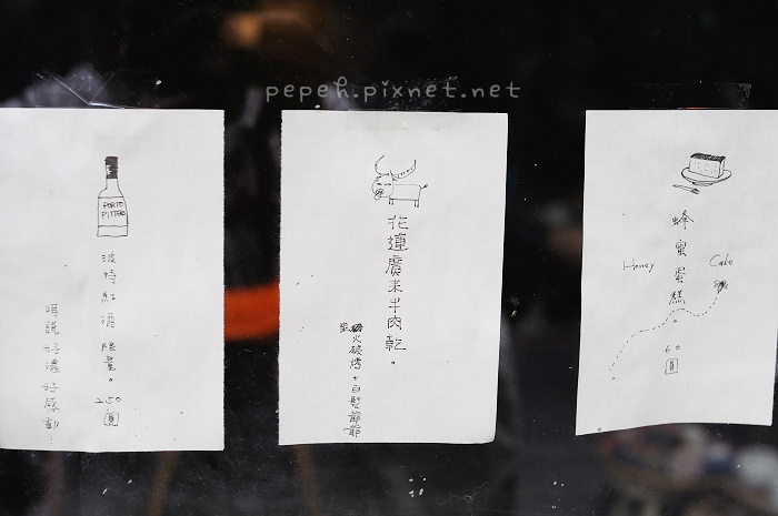 坐下後,果真如我們想像的好,往前是木製桌台和木窗小物,凝望路上行人匆然而過的身影也不錯,往後則可以看到室內的空間佈置,往左一看,桌上擺放各式文藝商品,一旁的低矮櫃也有文創書籍販售,即使屋內滿席,依舊可以保有個人的獨立席位,坐到了好位子真是心情愉快。