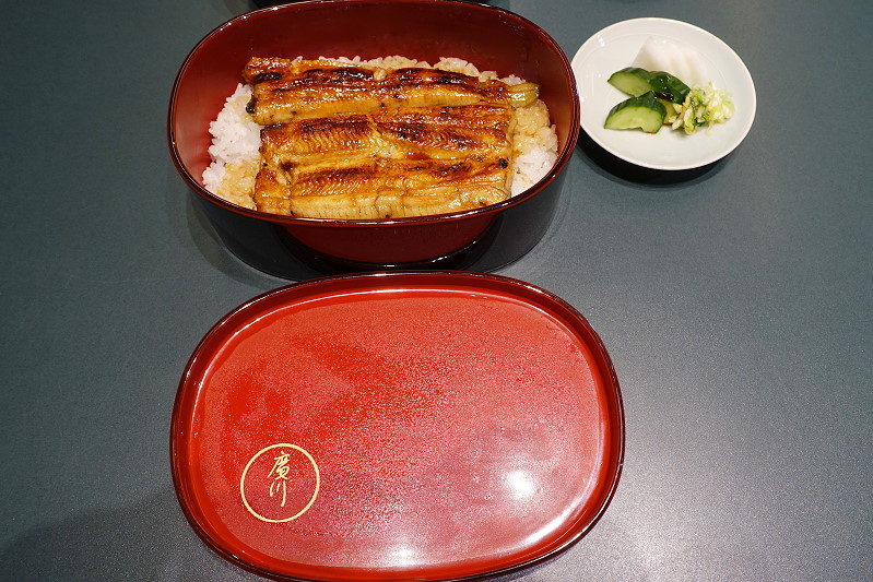 不到12點,第一組進去的客人就已吃完結帳,我們大概是12點多入座,前一組客人不想坐榻榻米座位,幸運得以提早入座,坐到可容納6人左右的榻榻米座位,不會跟其他組客人併桌,即便是1個人,也可能被安排到4人桌,因已事先點餐,入座後沒多久鰻魚飯便送上,點一中一大的鰻魚飯,廣川的鰻魚飯吃起來淡雅帶鹹,鰻魚烤得入味,單吃或配飯都好,店員的服務也讓人感到舒服,難怪能獲得許多好評,如果不用排這麼久的隊,會想再來廣川吃鰻魚飯~:))