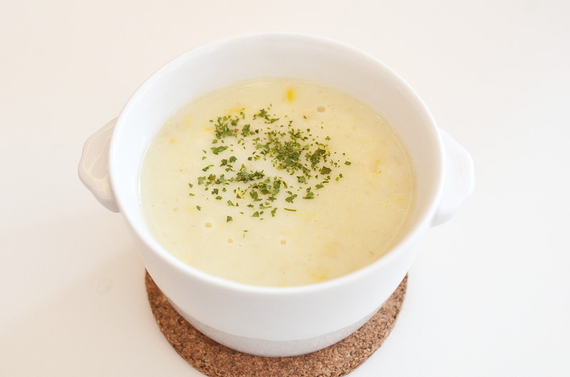 餐點均附一杯店家精選的南投製茶廠直送茶葉煮成的紅茶,微甜的風味在口中回甘不渴,店裡不主動提供吸管,很符合自己平日的外食習慣,已經習慣飲料不用吸管喝,在好點不用特別在菜單上註明或叮矚店員,覺得很安心。選擇一杯紅茶,另一杯紅茶以半價換成濃湯,這日是玉米濃湯,以燕麥、牛奶取代麵粉和奶粉,若事先不知,其實喝起來與一般的玉米濃湯味道不會差太多,但仔細品嚐會有燕麥香氣與口感,自己覺得健康好喝,也能吃到不少玉米粒。