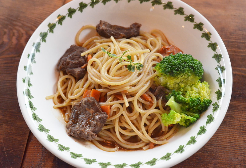 妳妳旅食商行提供各國餐食,這日點了橄欖油蒜片蝦、紅酒燉牛肉義大利麵、清炒白酒海鮮義大利麵和套餐組合,看到蒜片蝦搭配的是蒂頭麵包,加上我們超愛蒜片蝦的滋味,毫不猶豫的就選擇這道來品嚐,蝦身已剝好殼,只要去頭去尾就能大塊朵頤,蒂頭麵包沾上蒜香濃郁的橄欖油醬汁,帶點鮮蝦的海味,實在很難停下口,因橄欖油還有剩,又貪嘴加點一份麵包沾食。紅酒燉牛肉義大利麵和清炒白酒海鮮義大利麵是我們的主食,鮮蝦蛤蜊搭配蒜香與白酒爆炒的義大利麵,份量與口味都合味,搭配套餐組合與蒜片蝦,也有飽足感。