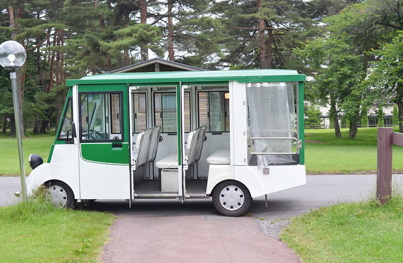 確認訂房和寄放行李後,坐綠線到輕井澤車站,到車站北口搭乘草輕巴士到舊輕井澤逛,後搭西武巴士到星野,再坐免費的星野接駁巴士到中輕井澤。一日行程結束後,再回輕井澤車站搭棕線到西館辦理入住手續,辦妥後會拿到一張到小木屋的接駁車號碼單,聽到叫號再去搭車到小木屋。若要出門,打房內分機61聯絡,接駁車就會過來接,有時人多得等候,但大約5-10分鐘就會有服務人員開著接駁車過來,服務態度佳。