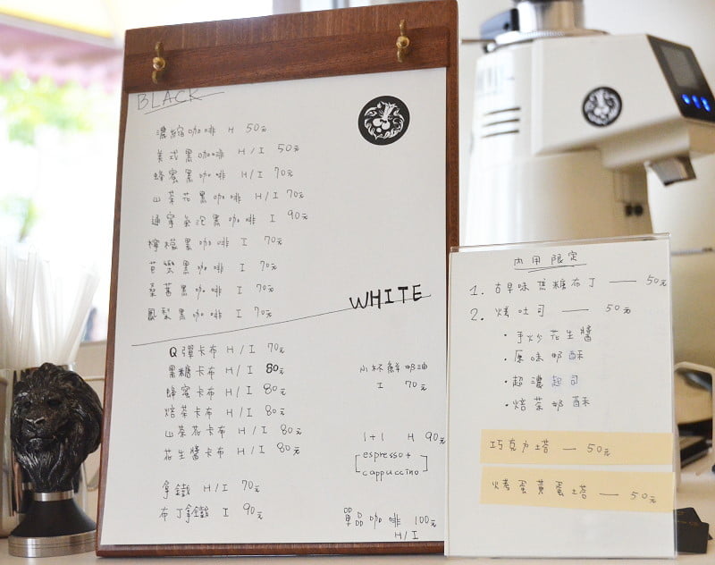 從毛毛的分享知道台南美術館對面新開了間以外帶為主的咖啡店-Barista ray coffee,位於友愛街,一樓店面以白色外觀、手寫字體呈現,內用座位只有少少的四個。MENU以咖啡為主,有各式水果黑咖啡、義式咖啡,也有內用限定的甜點,看起來都相當美味,價格也相當實惠,各點一杯咖啡與一份甜點是滿足的決定。