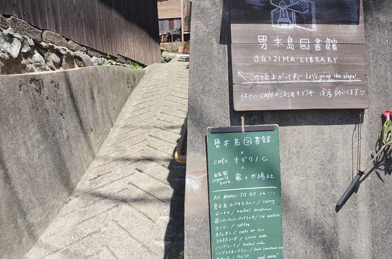 後得知男木島圖書館在庭院營造另一飲食空間,名為オギケノヒ×象と太陽社,提供男木島在地食材製作而成的咖哩與飲料甜點,真令人好奇其味道,也想再到圖書館翻看各式讀物,決心再訪。搭船至男木島後,直接熟門熟路往坂上直達男木島圖書館。