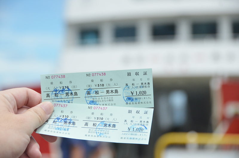 住在高松的Daiwa Roynet Hotel ,從瓦町搭乘琴電到高松築港站,往港口方向步行即可看到渡輪或高速船的售票處,在出發時間前20分鐘開始售票。