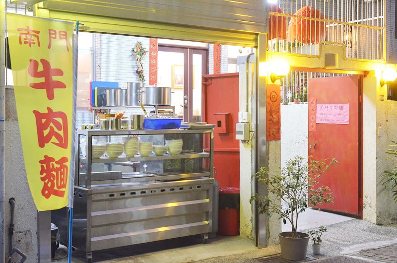 很喜歡與好友芩雯黃蟲交換美食情報,總是能得到不少實惠的美味好店名單,推薦的每間都會想再去,省去許多做功課的時間。這次得到的好店情報是南門牛肉麵,位於台南市中西區南門路44巷內,啟示錄隱形眼鏡旁的巷子裡,已開滿一年,自己常到這一帶用餐,但一直都沒注意到這家牛肉麵的存在。平日的南門路相當好停車,走進44巷內,麵店的黃底紅字旗幟與昏黃燈光一眼就能看到。