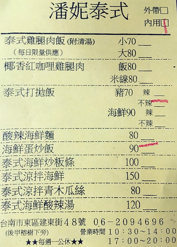 好久沒吃泰式料理,這家位於台南南紡購物中心附近的潘妮泰式餐食,開幕至今約3個多月,與一般需多人合食、價位略高的泰式料理相較,潘妮很適合做為日常先發名單,份量剛好一人份,價位親民,若想吃飽一點,也可在菜單上註明加飯或加肉。