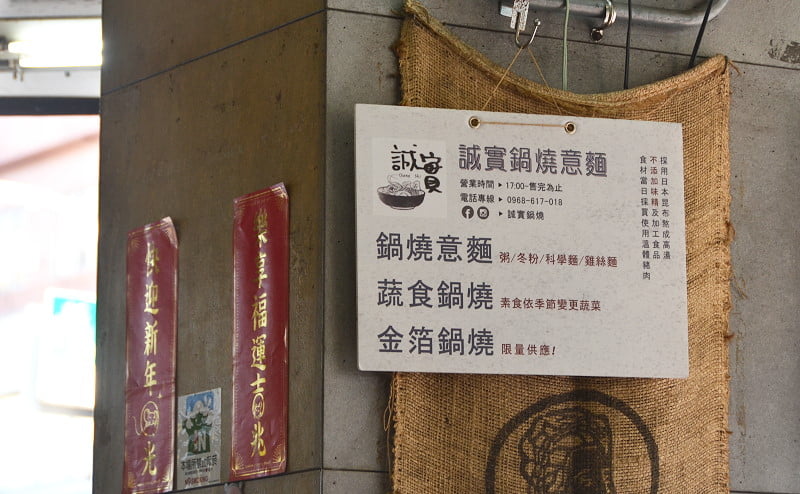 誠實鍋燒2.0 的外觀。在新光三越新天地附近的巷子,近保安路。