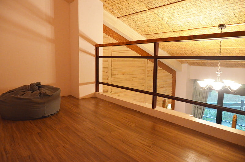 挑高樓中樓,樓梯往上還有個空間可坐臥。