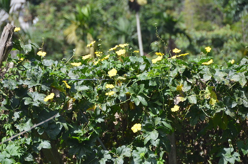 白日坐在陽台,可看到周遭的絲瓜開花。