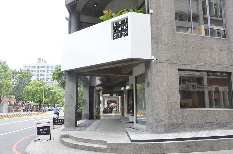喝起來 BOTTOMS UP 位於台南市東區長榮路三段,這一帶是之前很常來覓食的區域,在這裡有家自家烘焙咖啡館真好,吃完飯可以順便喝杯咖啡再開車離開。喝起來 BOTTOMS UP 的外觀,深灰牆面、英文小招牌嵌於白色突出立面,落地玻璃與大門的X型設計,低調中隱含質感,要不是早就知道這裡是咖啡館,還真的會錯過。