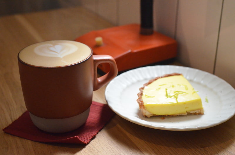 到櫃台點了一杯拿鐵、氣泡美式與檸檬塔,這杯熱拿鐵實在非常甜潤順口,喝完離開和平cafe’,還跟室友提了幾次這杯拿鐵真好喝,後來看到和平cafe’的貼文分享,原來是用自己好喜歡的台北沛洛瑟咖啡的中焙豆,拿鐵的堅果甜味實在迷人。室友點的氣泡美式也很適合炎炎午後,甜點選擇檸檬塔,酥香塔皮與微酸帶甜的內饀,是想吃點甜點的好選擇。