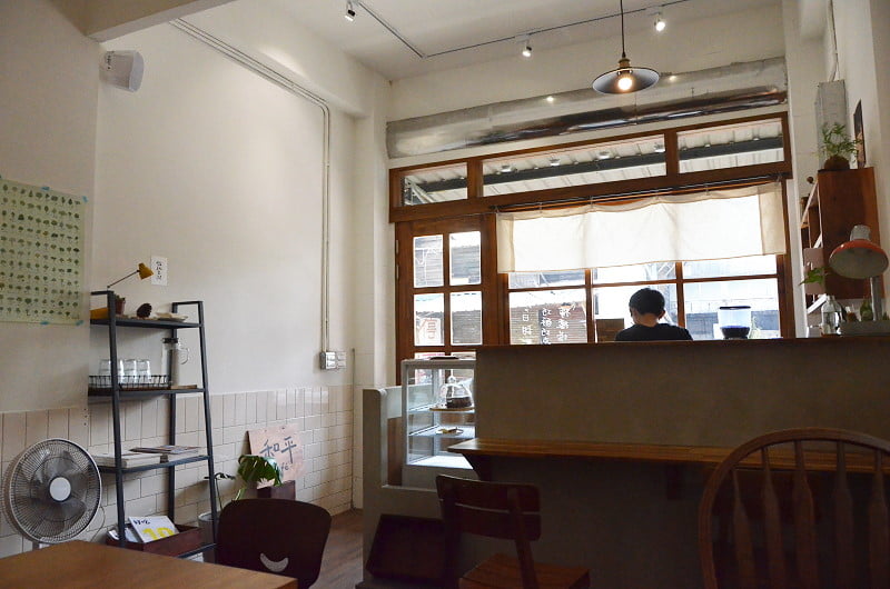 快閃嘉義吃飯,到蘭井街吃咖哩,好不容易找到停車格,搜尋了一下附近步行可達的咖啡店,最後決定去和平cafe’。尋常民宅的一樓以木製窗門搭建出好感門面,每日甜點寫在窗戶上,推門前可看到,推開門,素雅舒適的座位也很討人喜歡,找了靠窗座位坐下,喜歡午後陽光從細縫中透進窗的光線,像是聚光燈般,咖啡與甜點成了短暫的主角。