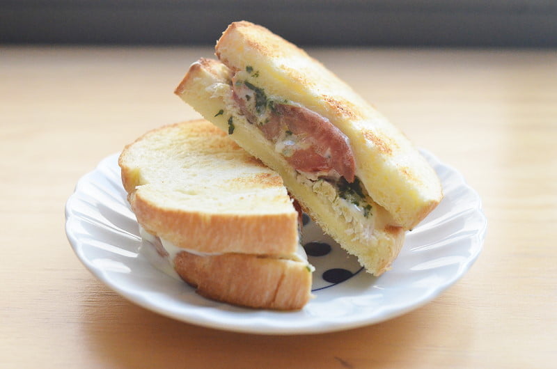 羅勒義式雞肉三明治,75元。
