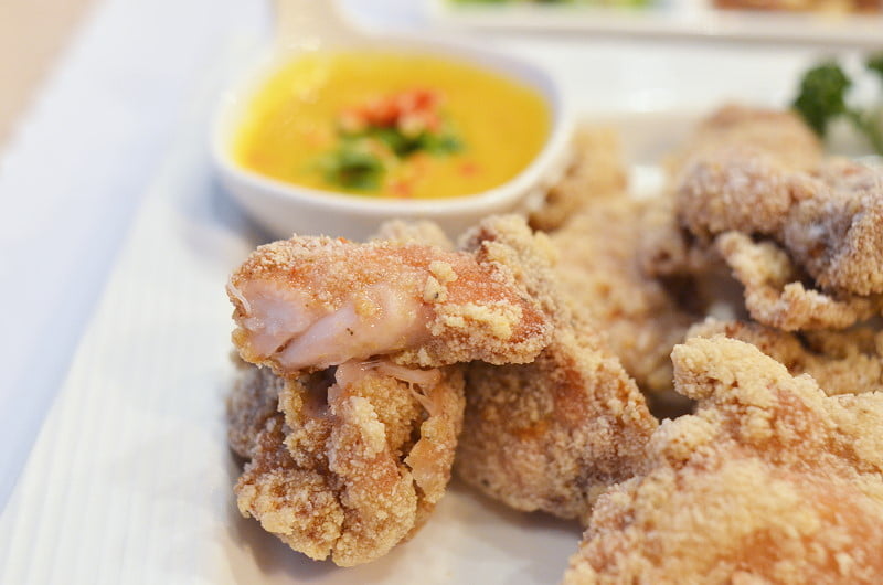 店裡強調用原型食物煮食或熬湯,火鍋不用加工食品丸餃類,待天冷再來吃鍋,這日先選定食,咖哩牛腩的肉塊與咖哩香氣也很開胃,自己最喜歡的還是泰式椒麻雞腿飯,用一大隻雞腿切炸成小塊,椒麻醬另外盛裝,可自行沾食決定辣度,炸雞腿塊的份量多,外酥肉嫩,不膩的炸物單吃、配飯都很美味,青菜與花生也很下飯,吃完再喝完湯、飲料,真的好飽。