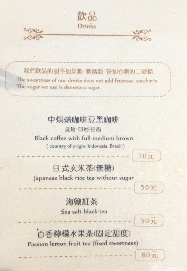 飲料的糖用二砂熬煮,不用果糖和糖精,附餐可選50元飲品,有海鹽紅茶和無糖玄米茶的選擇,加20元可點咖啡,店內選用安平的豐咖啡的咖啡豆,加價價格也好實惠,在辰心廚房能吃到安心與美味,用餐環境舒適,是我們近期推薦給朋友、也是自己想再訪的餐廳~:))