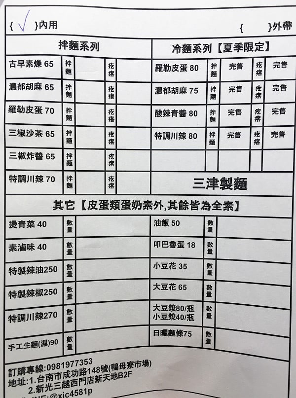 三津手工製麵/新光三越新天地內的獨特風味素食手工麵‧台南