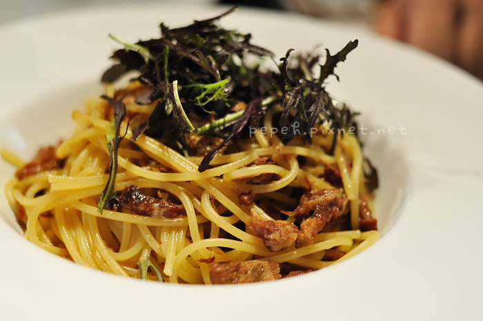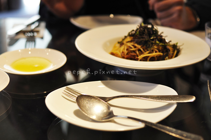 清炒豬肉義大利麵,雖然只點一份套餐,但prinz很貼心的附上二個餐盤與餐具讓我們分食所有菜色。