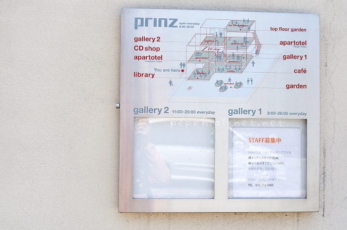 從milly的書中認識prinz,位於京都藝術大學附近的prinz,是家咖啡館,也是展覽空間,也是書店唱片行,交通其實很方便,可以坐5號公車在京都藝術大學站下,下車後往前直走約5-10分鐘左手邊便是prinz。