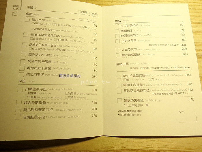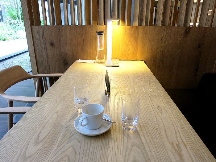 在府都建設地下一樓的虫二,非常低調,沒有明顯的招牌,也沒有特別的指示標誌,即便到了ALL IN ONE地下一樓也不見得能發現,虫二咖啡是府都建設與前ORO老闆合作的咖啡店,咖啡有一定的水準,建築也獨特,還沒開幕前曾到這裡一探究竟,採會員優先制,但非會員也可以入內喝咖啡,先在門口稍候,有空位時店員會來詢問帶位,面向建築水景的小包廂位全滿,店員先帶我們到面對書架的二人桌入座,各點了一杯咖啡,合食一份烤布蕾,翻閱菜單時一度被espresso的價格嚇到,義式濃縮咖啡竟然與卡布其諾的價格同為160元,結帳時店員告知只要是熱飲,可再續同樣一杯,再仔細看菜單,果真有註明,是自己沒注意到,二杯咖啡160元,這樣的價格尚合理可親,還可以理所當然的待上好一段時間,而且店員會主動詢問是否需要續杯熱飲,對於虫二咖啡,印象好。