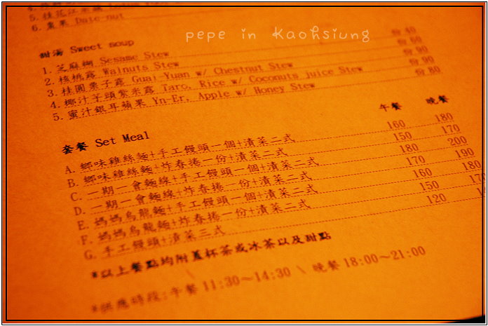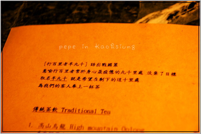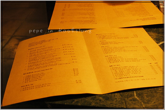 ●進到餐廳,服務生送上兩張菜單,菜單上介紹餐廳名稱的由來,還有各式茶點的價格,餐點茶飲的價格並不貴,很適合來這裡品茗閒坐。