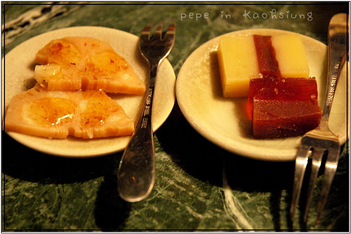 ●今日甜點是桂花豆泥糕和桂花蓮藕,兩者都相當精緻好吃,份量也恰到好處,邊喝熱茶邊吃點心的我們,享受到異於咖啡藝廊的風情,愉快的喝著茶也是難得的回憶。