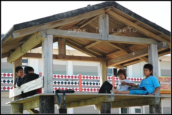 ●學校裡有蘭嶼傳統屋不可缺少的涼台,當地小孩就三三兩兩在上頭休息。