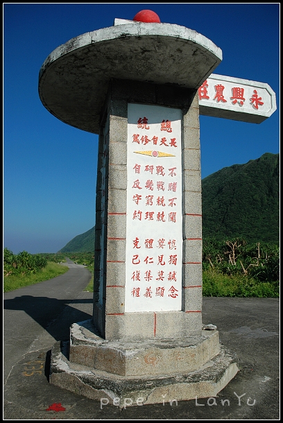 騎著車,拿著相機,就在蘭嶼的環島公路上邊停駐邊照相, 一個下午去看了兩間有特色的學校,去補充水份,去了機場吹冷氣, 這才發現,蘭嶼還真的不小,若要每個點都停下來認真看一下, 半天是沒辦法完成的,因此,這個下午, 我們只走了地圖上開元港到雙獅岩, 至於還沒走到的部份,就待隔天阿暉帶我們去環島時再看個仔細。