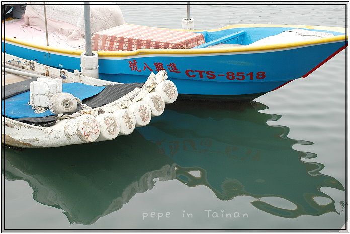 其實,緊鄰的安平港也很有可看性,中油加油站前的水域,停靠一艘艘的小漁船,每一艘的形體、顏色都與眾不同,且用色格外鮮豔,就算那天天氣陰涼,因船的顏色豐富,拍起來也不致太過灰暗,拍的並不好,還是羞澀的放上來請大家多指教。