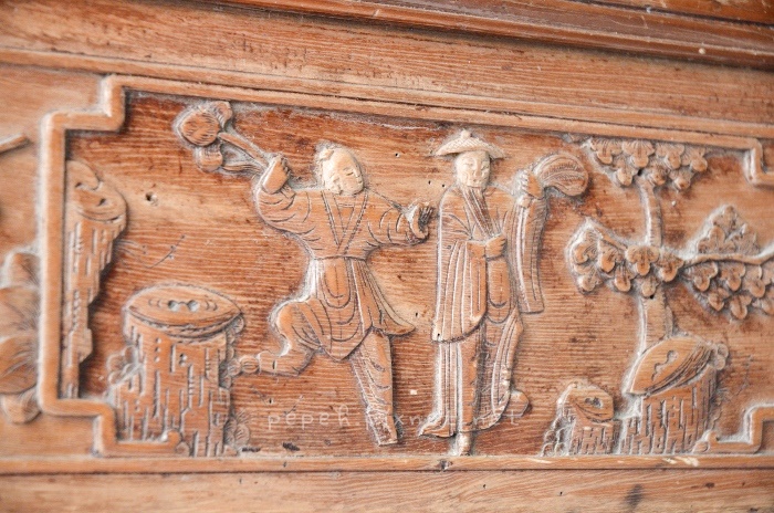 門板上的雕工。