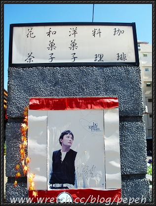 踏進門口,有張信哲的寫真照,並寫著這餐廳供應那些美食…