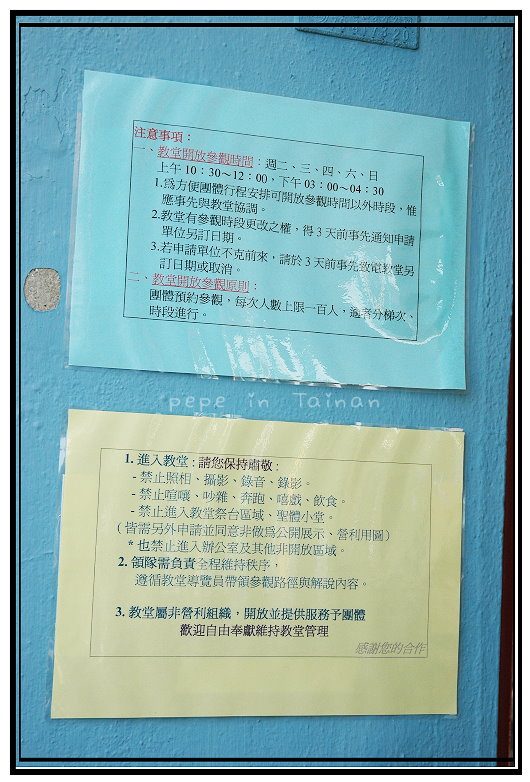 呵呵~感謝Morris大來訪,可能是太多民眾參訪,造成他們教友的困擾…或許下次我們揪團,變成"團體參觀"~還有導覽呢~呵呵^_^