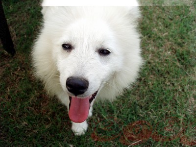 最有趣的莫過於園內的二隻小白狗,這隻較多毛、看起來像狐狸的白狗狗,比較喜歡來找我們,可能是因為剛好在吃冰,他們也想吃吧…^^
