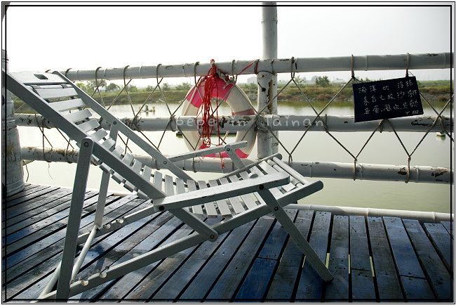 ●吃飽了,可以到餐廳旁的休憩區,這裡架高於水上,仍以藍白色系為主,藍色桌椅隨處可見,白色躺椅則可仰看水上風光。