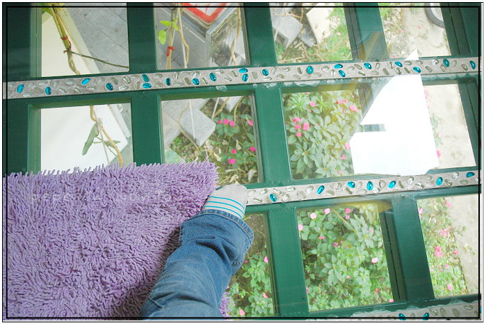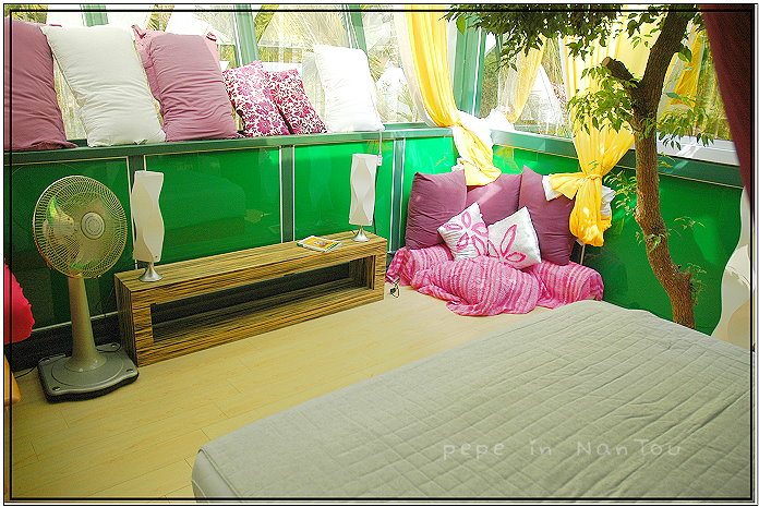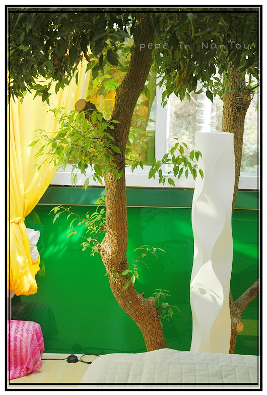 老闆還親切的帶我們參觀”綠光”,這棟建築是老闆設計的城堡,在城堡裡,仰著頭可以看見白雲飄,低頭俯視玻璃地板可以望見小花園,不禁令人覺得身處在空中的花園閣樓,是六人別墅,有房間、有陽台、有廚房、有客廳,如果是一群朋友來住一定很棒。