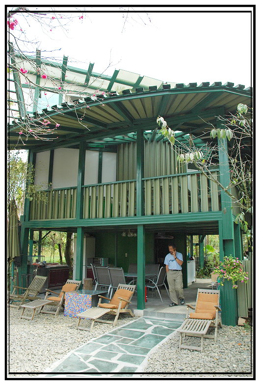 民宿從頭到尾全是老闆一手設計獨力蓋出來的,以玻璃為主建材,ㄇ型鋼為主結構,沒搭鷹架、沒請吊車,所有的鋼筋水泥都是老闆以槓桿原理自製的簡易機械吊進來的,蓋出三棟民宿房間和家人居住的空間,更驚人的是,1999年發生921大地震,南投受創嚴重,這棟自己蓋的房子卻毫髮無傷,吸引許多國內外建築系教授組團參觀。