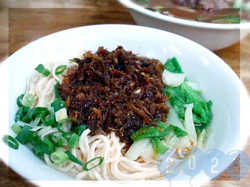 我點了干貝醬乾麵80元,這盤乾麵不可小覷,也許就是這些干貝醬,讓這碗乾麵身價大漲呢!老闆毫不客氣的加了許多干貝醬,老實說,味道真香,讓人不知不覺的全部呼嚕呼嚕的吞下肚呢!