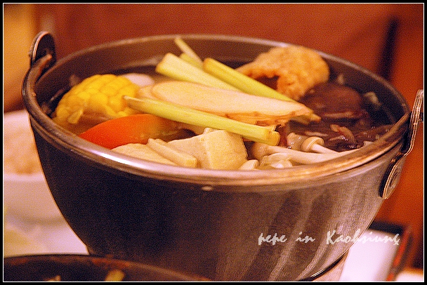 ●容點的檸檬香茅蔬菜火鍋,270元。原本容是要點孳膳湯麵線(170元)的,沒想到,麵線竟然賣完了,只好改點火鍋。