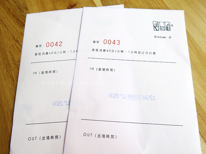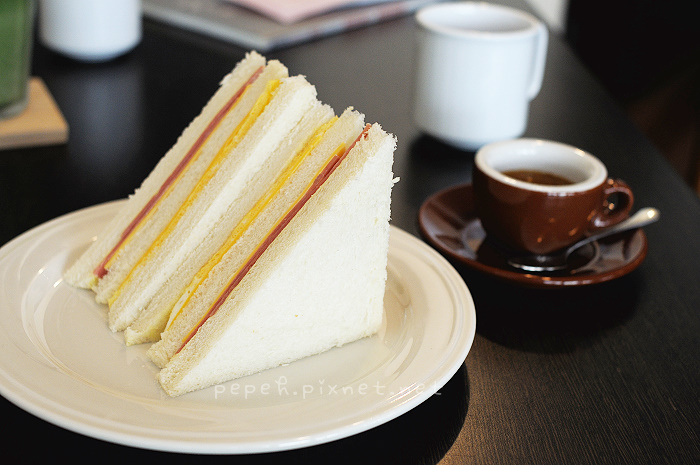 這兒的消費方式也很平實,走進Room A的閱覽室前,店員會先送上一場入場券,上面註記進入閱覽室的時間,離開後再依照所待時間結帳,每人最低消費60元,超過一小時以一分鐘1元記,沒有待滿一小時也是60元,最低消費60元,含免費大量閱讀店裡的書刊、自由取用的綠茶與洛神花茶、熱茶包、煮好的咖啡與wifi,如果肚子餓的話,可到櫃台另外加點輕食飲料,30元的espresso、40元的營養三明治,還有50元的起士蛋糕、60元的抹茶歐蕾,這是我們那天的簡單午茶,味道單純簡單,每一種卻讓人口齒留香,就連30元的espresso也得到友人的讚美,飲料可在閱覽室飲用,若像我們點了三明治與蛋糕,便得暫時離開閱覽室,到櫃台旁的餐桌食用,尊重書籍、也避免影響客人的閱讀,這一點我們相當認同~^^
