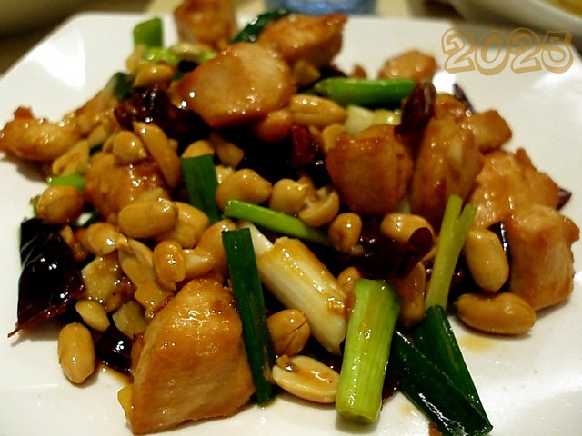 仔細一看,這宮保雞丁可放了不少辣椒,還挺辣的呢!
