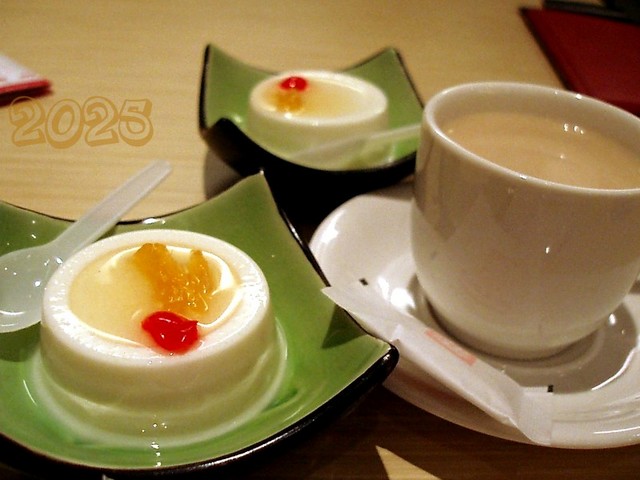 最後,就是甜點和飲料囉!今天的甜點是奶酪,上面有灑些罐頭水果,旁邊則是熱奶茶。