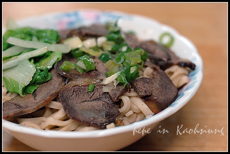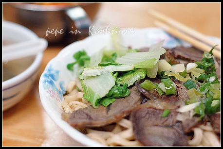 另外,我們還特別注意到,上回吃牛老二本店時,麵是加了大量空心菜(還是地瓜葉呢?),這裡的麵則是加了青江菜。