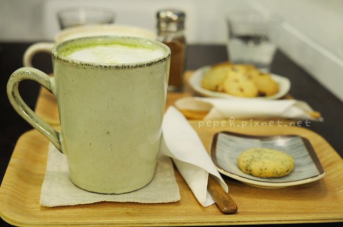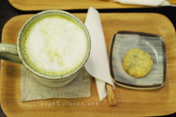 抹茶歐蕾,140元,附一塊小餅乾。