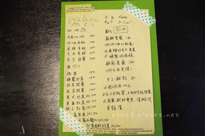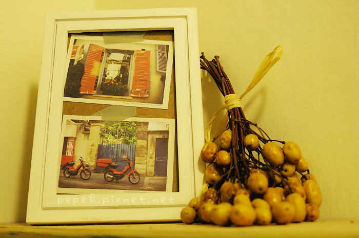 傍晚的pain de mie,那天恰巧沒什麼客人,我們盡情享受一屋子的寧靜與美好氣氛,微熱的飲品掃去冬末的冷,喝喝歐蕾、翻翻雜誌、看看雜貨,心底自是愜意~^^
