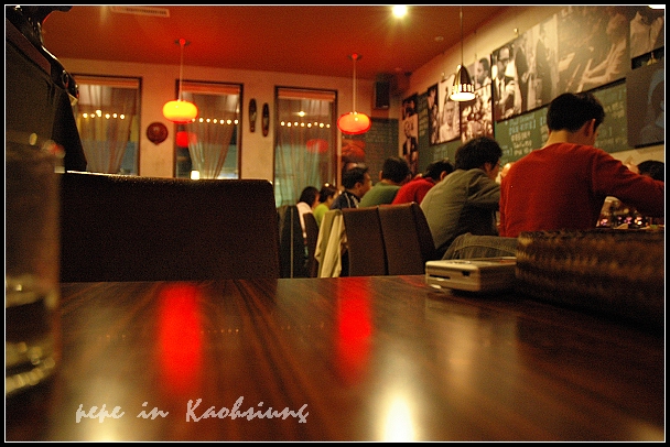 拍著旁邊已訂位的桌子,襯著後方爵士樂海報與人偶,音樂餐廳原來給人如此悠閒、如此期待、如此想樂的感受。