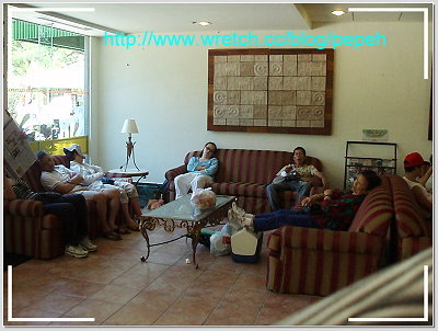 一進去,一堆遊客就攤在沙發上,當成自己的家,真是懂得享受呀!(此張為pepe冒死偷拍的)