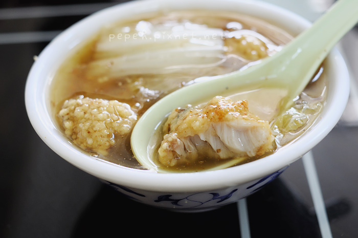 我則是喜歡紅燒土魠米粉羹,與單純只有羹湯的土魠魚羹價格相同,小碗均為45元,雖然米粉羹看起來較大碗,但土魠魚塊還是羹湯較多。