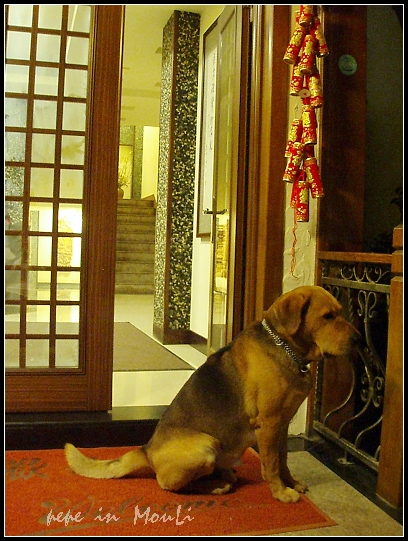 放好行李,準備到外頭覓食去時,發現了”小熊”,忠心耿耿的站在門口。