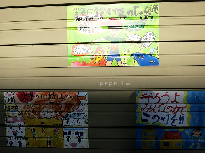 對面是高知市消防団北街分団,鐵門上是小朋友畫的消防彩繪,真可愛。