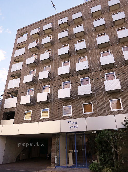 下車後,沿路看到7days hotel的白色建築。
