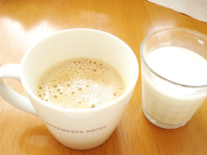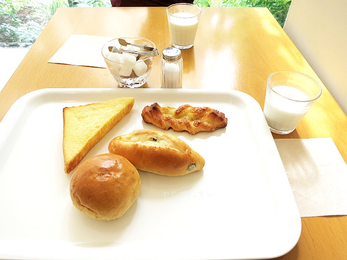 第一天的早餐,麵包配牛奶。